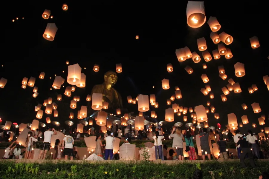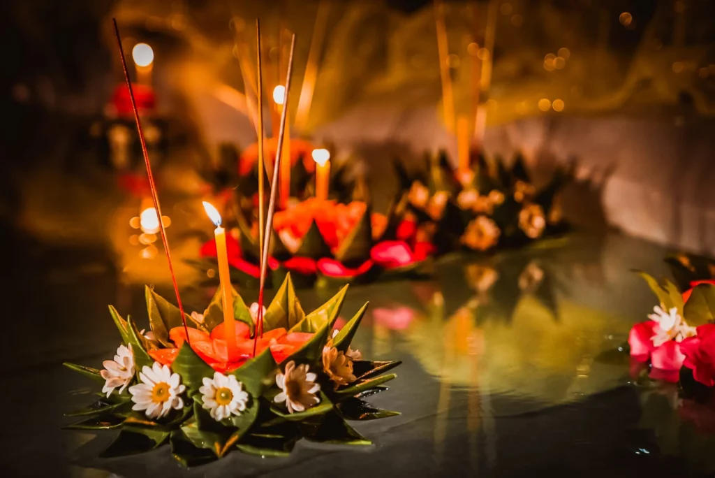 Loy Krathong [ลอยกระทง] is one of the biggest festivities in Thailand. It is when people take to the waters to release small, illuminated boat offerings made of banana stalks and leaves. Over the years the sight of lights floating across the country’s rivers and canals has become a point of intrigue for visitors from all over.